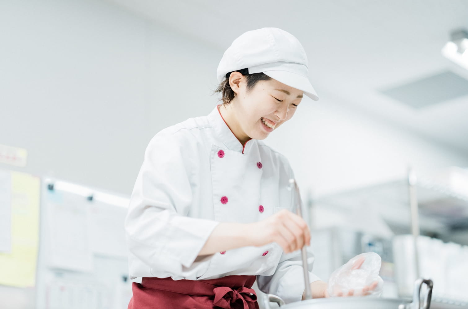 IQキッズでは調理師と保育現場の距離が近く、食事する子ども達の様子を側で見守る事ができる所がとても魅力的です。自分の考える食育活動や給食の提供を行っていく事ができて毎月献立を考えるのが楽しみです。又、誕生日や行事の際には子ども達の声を直接聞いて献立に組み込む事ができ「美味しかった!」「また作ってね」と直接言いに来てくれる子もいます。やってみたいと思う事をすぐに実現でき、保育士の先生方と相談しながら食事のマナーについても声を掛けるなど、その子にあった食育活動を調理師と保育士が協力し合って行う事が出来る職場です。